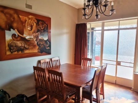 3 Bedrooms, 3 Bathrooms, Study, Lounge, Kitchen with gasstove and seperate scullery, Tv room with built in braai, Dining room,3 x carports, Double garage, 1 Bedroom flat with kitchen, bathroom and lounge. 2 x 2200 l watertanks, Swimmingpool and lapa, Alarm, Electric fence. Storeroom